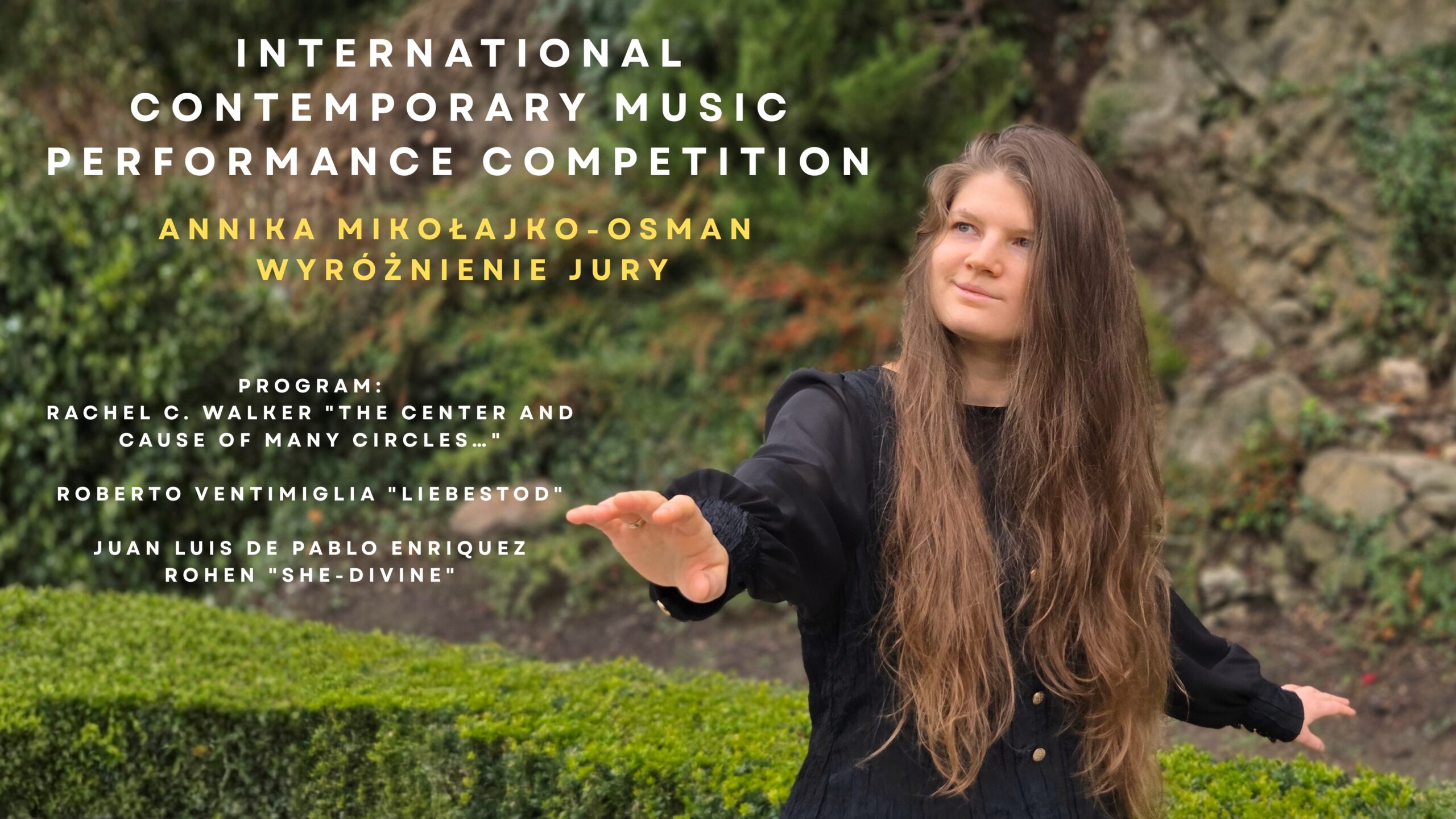 The recording comes from the Special Concert „Contemporary vocal works in a different way, i.e. involving the singer in stage actions and instrumental playing”. The concert is the artistic part of the doctoral thesis of PhD Annika Mikołajko-Osman prepared under the supervision of Prof. Dr. Tomasz Sobaniec and PhD Iwona Sowińska-Fruhtrunk.